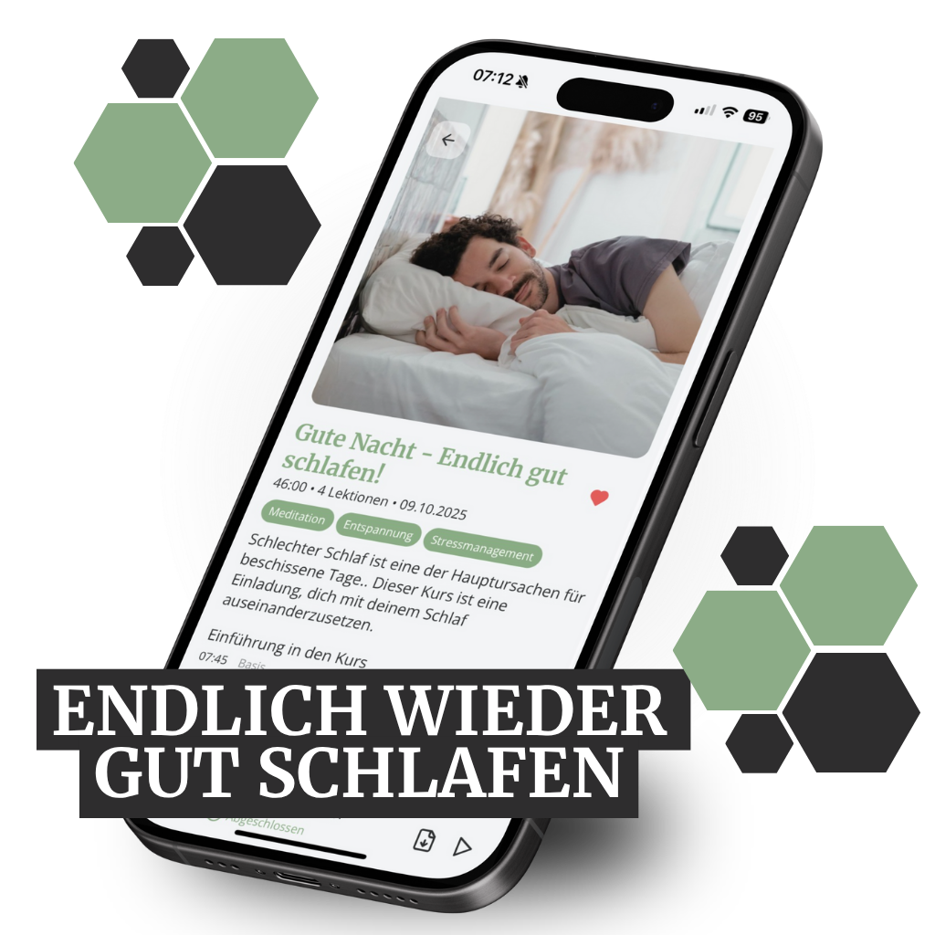 Dein guter Schlaf ist wichtig, klar. Doch was bedeutet gut Schlafen eigentlich? Welche Hebel und Stellschrauben kannst du nutzen, um deine Schlafprobleme zu verbessern? In unserem Kurs "Endlich gut einschlafen" bekommst du in kurzen Audiofolgen genau das was du brauchst. Egal ob dich das Ein- oder Durchschlafen oder das Aufwachen bekümmert.