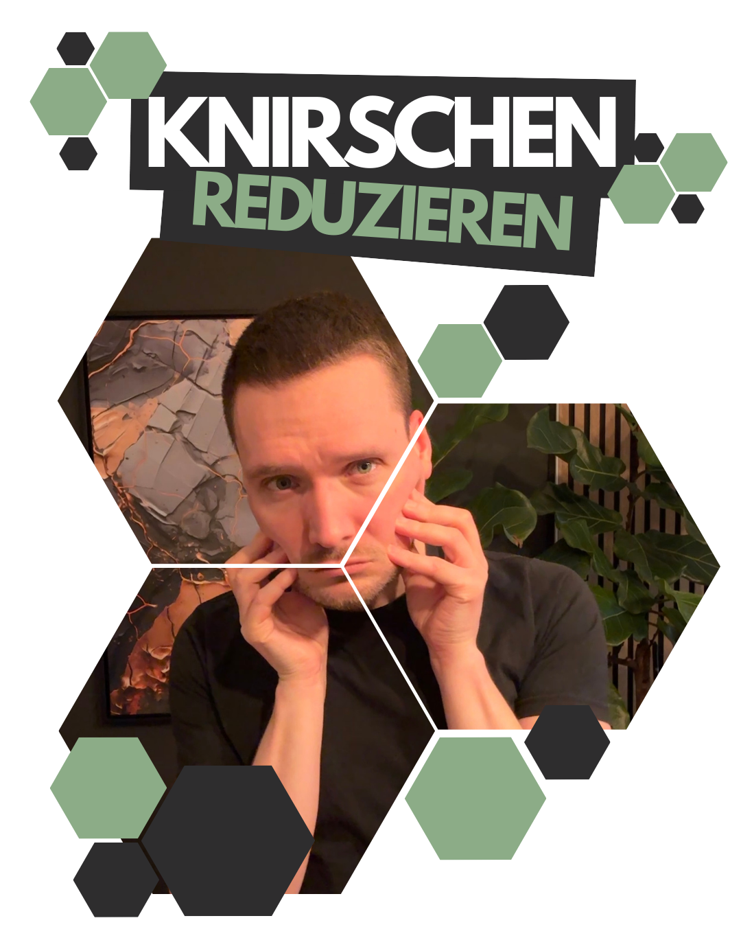 Wusstest du, dass übermäßiges Pressen und Knirschen mit den Zähnen nicht nur deinem Zahnschmelz schadet, sondern auch deine Kaumuskulatur massiv beansprucht? Zahnärzt:innen und Kieferorthopäd:innen können oft erkennen, ob jemand knirscht – beispielsweise an besonders ausgeprägten Kaumuskeln, die den Kiefer breiter erscheinen lassen. Dieses Ungleichgewicht kann so weit gehen, dass es dir schwerfällt, den Mund weit zu öffnen, ohne Schmerzen knapp unterhalb der Ohren zu spüren.